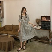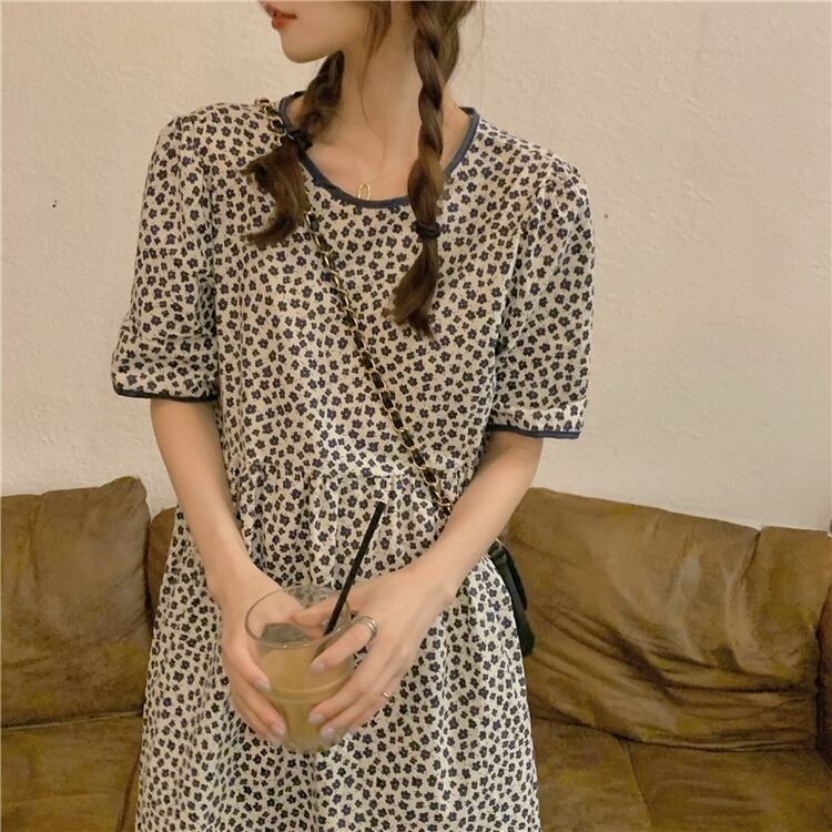 ワンピース ロングスカート 花柄 小花柄 ブルー グリーン 青 緑 レディース ふわふわ ひらひら 可愛い カワイイ カジュアル こなれ感 韓国 韓国風 オルチャン 大人 おしゃれ 大人可愛い 大人女子 10代 20代 30代 40代 50代 普段着 普段遣い ロング丈 フェミニン キュート ガーリー ラフ ヌケ感 ルーズ 着回し 旅行 海外 Aライン ワンサイズ 双子 色違い お揃い 公園 デート シンプル インスタ映え ゆったり 半袖 5分丈 リボン ミディアム丈 レトロ 通勤 学生 通学 楽ちん