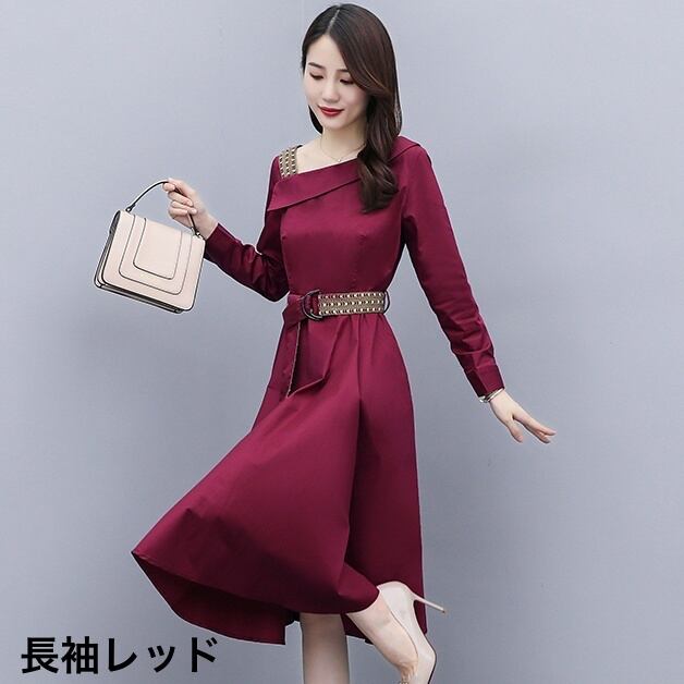 ワンピース レディース フレアワンピース 膝丈 ひざ丈 袖あり 半袖 長袖 ラウンドネック フレア Aライン 裾フレア シフォン ウエストリボン ふわふわ かわいい 大人可愛い きれいめ シンプル カジュアル 大人 上品 おしゃれ お洒落 大人女子 こなれ感 キュート エレガント フォーマル とろみ感 L XL 2XL 3XL 赤 レッド 青 ブルー ネイビー 20代 30代 オフィス ビジネス OL 通勤 女子会 パーティー 着回し 普段使い 韓国 韓国系 モテ 新作 トレンド 流行 インスタ映え