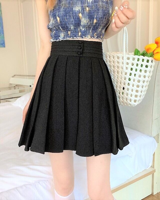 ウエストの飾りボタンがキュートなプリーツスカートです。