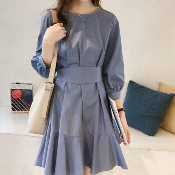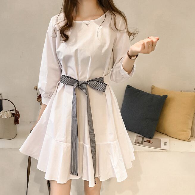 ワンピース ミニスカート ミニ丈 ショート丈 プレーリースカート 白 ホワイト 青 藍 ブルー インポートファッション 七分袖 7分袖 Uネック ラウンドネック 襟なし 裾フレア ギャザー タック ウエストマーク ウエストリボン リボン かわいい 大人可愛い 大人 大人女子 きれいめ おしゃれ お洒落 シンプル 可憐 シック ラブリー キュート ガーリー フェミニン 10代 20代 30代 通勤 学生 通学 デート お出かけ 女子会 休日 普段使い カジュアル こなれ感 ラフ 抜け感 上品 エレガント