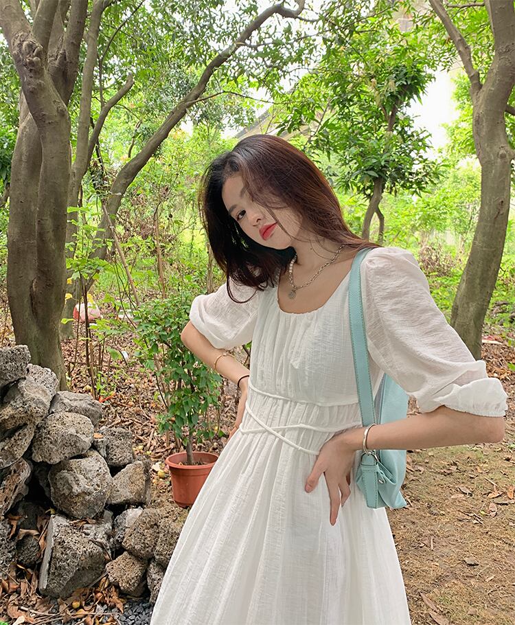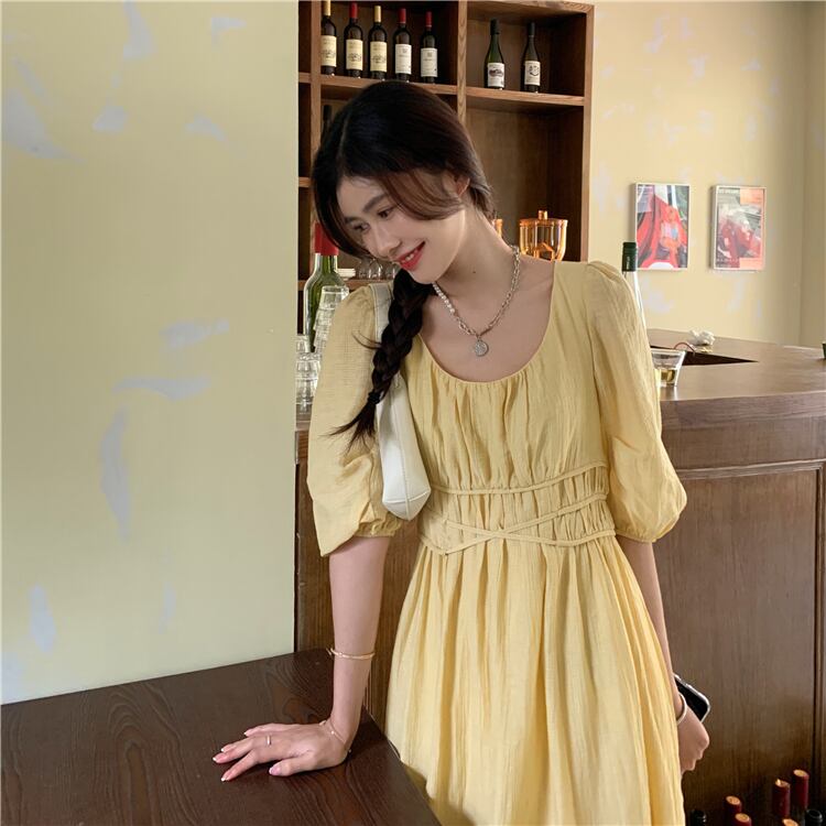 ワンピース レディース ロングスカート フレアスカート 膝下 ロング丈 ロング 袖あり 5分袖 五分袖 パフスリーブ ラウンドネック シャーリング ギャザー ウエストマーク ふんわり ワイド 薄手 夏 透け感 かわいい 大人可愛い 大人 大人女子 きれいめ おしゃれ お洒落 シンプル ラブリー キュート ガーリー 10代 20代 30代 通勤 学生 通学 デート お出かけ 女子会 休日 イベント 普段使い カジュアル こなれ感 ラフ ルーズ 抜け感 ゆったり ゆる 上品 エレガント パーティー リゾート