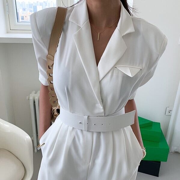 パンツスーツ パンツスタイル ホワイト ストレート ワイドパンツ ベルト 襟付き 半袖 オールインワン S M L XL ジャンプスーツ 女性 夏 セクション新しい スーツ 襟 ウエスト ワイドレッグパンツ 長ズボン ズボン 通勤 OL コンサルティング 会議 通勤 オトナモード クール スタイリッシュ 結婚式 ブライダル 披露宴 二次会 パーティードレス ドレス アイテム 韓国 韓国ファッション お食事 お呼ばれ 特別な日 サイズ 豊富 20代 30代 40代 50代 大人女子 トレンド オススメ