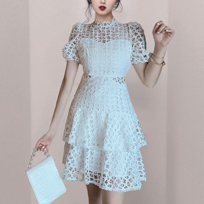 レースワンピース 網目 レース ホワイト 半袖 ミディアム丈 ミディ レース S M L XL 女性 夏 フレンチ パフスリーブ ウエスト セクシー Aラインスカート かわいい 大人可愛い きれいめ シンプル 大人 おしゃれ かっこいい 大人女子 こなれ感 セクシー エレガント 結婚式 二次会 披露宴 10代 20代 30代 OL お出かけ 女子会 パーティー イベント リゾート 着回し 韓国系 ファッション コーデ スタイル 人気 大人女子 スタイル 主役級 ウエディングドレス 美脚 足長 モード系