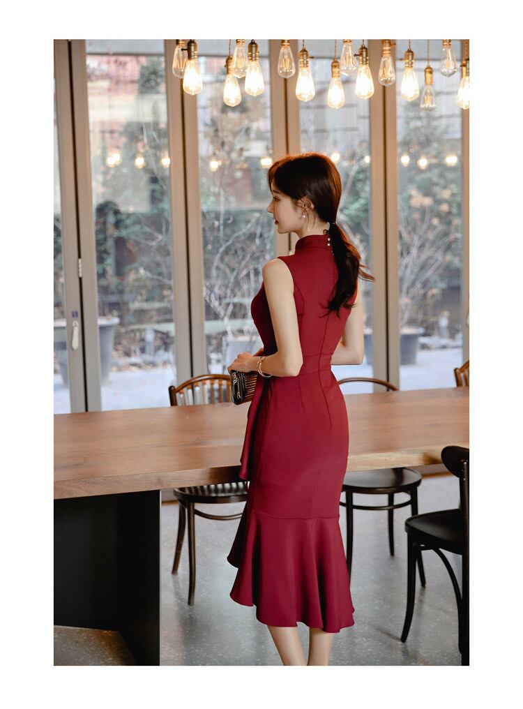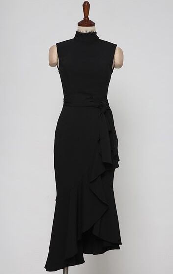ワンピース レディース ティアードワンピース ミモレ丈 袖なし ノースリーブ スタンドカラー 襟付き タイト 細身 裾フレア フリル ファスナー ハイウエスト ウエストリボン かわいい 大人可愛い きれいめ 大人 上品 おしゃれ かっこいい 大人女子 こなれ感 ラブリー キュート ガーリー セクシー エレガント レッド ブラック 無地 春 結婚式 二次会 披露宴 10代 20代 30代 OL 通勤 学生 通学 デート お出かけ 女子会 パーティー イベント コーデ スタイル モテ 美脚 脚長 インスタ映え