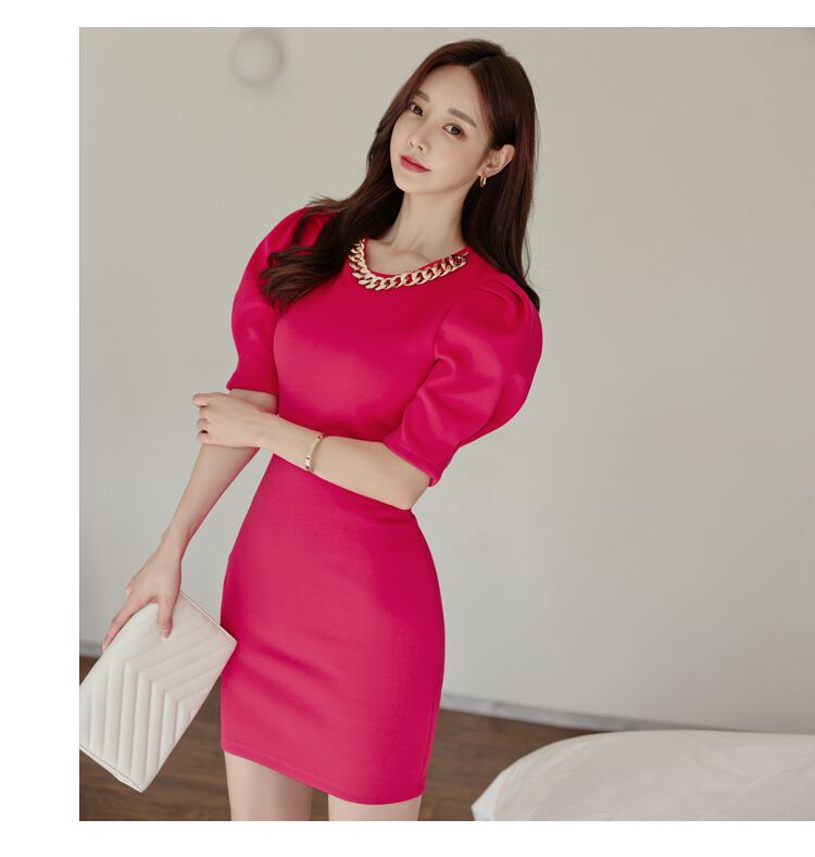 ワンピース レディース タイトワンピース ミニ丈 ショート丈 袖あり 半袖 パフスリーブ ボリューム袖 ラウンドネック 襟無し スリム タイト 細身 ファスナー かわいい 大人可愛い きれいめ 大人 上品 おしゃれ かっこいい 大人女子 こなれ感 セクシー エレガント 結婚式 二次会 披露宴 10代 20代 30代 OL 通勤 学生 通学 デート お出かけ 女子会 パーティー イベント リゾート 韓国系 オルチャン ファッション コーデ スタイル モテ 体系カバー 美脚 脚長 インスタ映え ローズレッド
