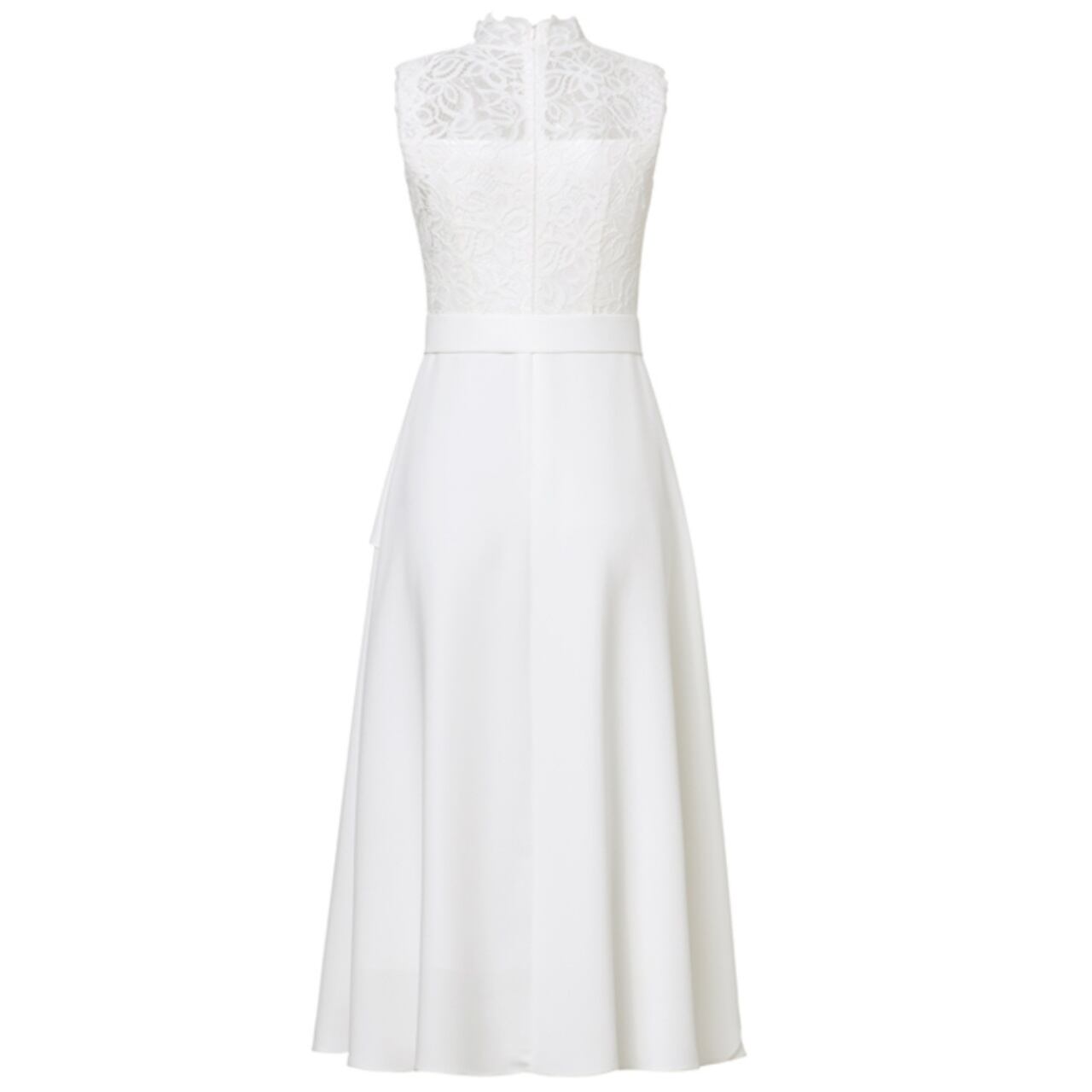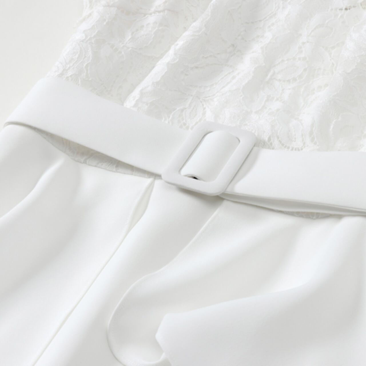 ワンピ レディース フォーマルドレス レース バックファスナー ハイネック ラッフルスカート アシンメトリー 裾フレア 膝下 ミモレ丈 ミディ ウエスト切替 ベルト かわいい 大人可愛い きれいめ シンプル 上品 かっこいい 大人女子 こなれ感 キュート セクシー エレガント フェミニン フォーマル 存在感 4サイズ展開 ホワイト 無地 食事会 結婚式 披露宴 二次会 謝恩会 10代 20代 女子会 パーティー イベント 韓国系 オルチャン ファッション コーデ スタイル モテ 美脚 脚長 体型カバー