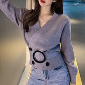 Vネック ニット フレンチ ジェントル ストリート トップス 秋 冬 ニュースタイル ウエストシンニング ベースシャツ レディース グレーブラック S M L XL ベルト 長袖 新作 オトナモード クール スタイリッシュ かわいい 大人可愛い きれいめ 大人 上品 おしゃれ かっこいい 大人女子 こなれ感 セクシー エレガント 10代 20代 30代 OL 通勤 学生 通学 デート お出かけ 女子会 パーティー イベント リゾート 旅行 着回し 普段使い 韓国系 オルチャン ファッション コーデ モテ