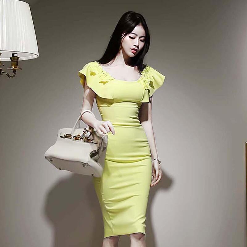 ワンピドレス レディース ワンピース タイトスカート 膝丈 ひざ丈 袖あり 半袖 ハンカチーフスリーブ ラウンドネック 襟なし スリム タイト 細身 ストレート 刺繍 スリット バックスリット ファスナー 黄色 イエロー 無地 かわいい 大人可愛い 大人 大人女子 きれいめ おしゃれ お洒落 シンプル ラブリー キュート ガーリー 10代 20代 30代 学生 通学 デート お出かけ 女子会 休日 イベント こなれ感 抜け感 上品 エレガント セクシー フォーマル 結婚式 二次会 披露宴 パーティー