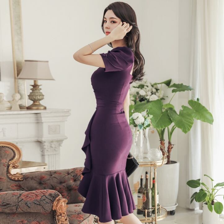 ドレスワンピ レディース ファスナー ワンピース タイトスカート ひざ丈 膝丈 袖あり 半袖 パフスリーブ スクエアネック 襟なし スリム タイト 細身 ペプラム ギャザー ボタン スリット 切り替えデザイン 紫 薄紫 ダークパープル パープル かわいい 大人可愛い 大人 大人女子 きれいめ おしゃれ お洒落 シンプル ラブリー キュート 10代 20代 30代 学生 デート お出かけ 女子会 休日 イベント こなれ感 抜け感 上品 エレガント セクシー フォーマル 結婚式 二次会 披露宴 パーティー