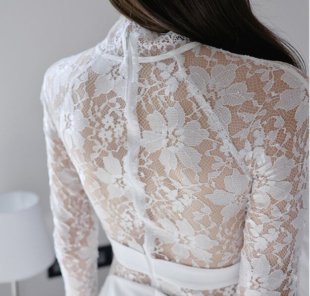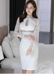 ワンピース レディース ワンピドレス タイトスカート 膝丈 ひざ丈 袖あり 長袖 ハイネック ティアドロッププラケット スリム タイト 細身 ストレート レース 刺繍 ウエストマーク 透け感 シースルー 白 ホワイト かわいい 大人可愛い 大人 大人女子 きれいめ おしゃれ お洒落 シンプル ラブリー キュート ガーリー 10代 20代 30代 学生 通学 デート お出かけ 女子会 休日 イベント こなれ感 抜け感 上品 エレガント セクシー フォーマル 結婚式 二次会 披露宴 パーティー 存在感 モテ