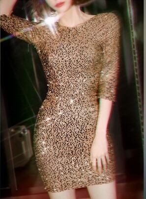 ワンピース レディース タイトワンピース ミニ丈 ショート丈 袖あり 七分袖 ラウンドネック 襟無し スリム タイト 細身 ファスナー スパンコール 光沢 大人可愛い きれいめ 大人 上品 おしゃれ かっこいい 大人女子 こなれ感 セクシー エレガント 結婚式 二次会 披露宴 10代 20代 30代 OL 通勤 学生 通学 デート お出かけ 女子会 パーティー イベント リゾート 韓国系 オルチャン ファッション コーデ スタイル モテ 体系カバー 美脚 脚長 インスタ映え ブラックダーク ゴールド
