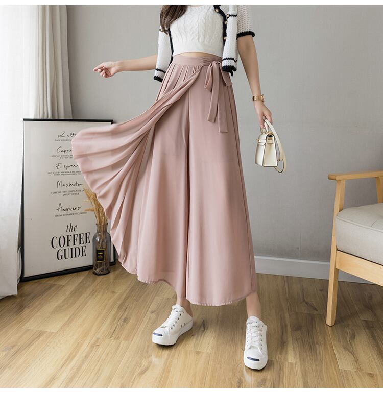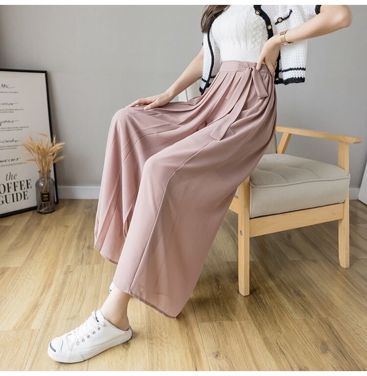 ワイドパンツ レディース 女性用 ハイウェスト シフォン 伸縮性 カジュアル プリーツ 袴 クロップドパンツ くすみカラー パステルカラー ウェストリボン ゆったり かわいい 大人カジュアル きれいめ 上品 シンプル こなれ感 ストリート モダン アジアン エレガント フォーマル 存在感 ガーリー 個性的 ラブリー キュート ガーリー 10代 20代 30代 オフィス OL 通勤 通学 学生 女子会 カフェ 謝恩会 母の日 誕生日 アウトドア お出かけ 休日 お泊まり オルチャン 定番 体系カバー