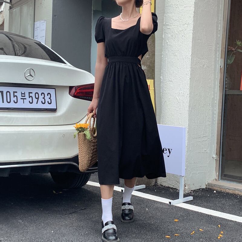 Aライン ワンピース ドレス パフスリーブ リボンベルト ミドル丈 ミモレ丈 無地 可憐 清楚系 レディース 膝下 全2色 ブラック 黒 ホワイト 白 パーティー エレガント 韓国 韓国風 オルチャン きれいめ 大人 上品 おしゃれ 大人可愛い 大人女子 セクシー キュート ガーリー シンプル 10代 20代 30代 40代 50代 イベント 主役級 存在感 二次会 謝恩会 披露宴 美脚 脚長 インスタ映え 誕生日 パーティー 双子コーデ お揃い 透け感 抜け感 ラウンドネック お出かけ デート