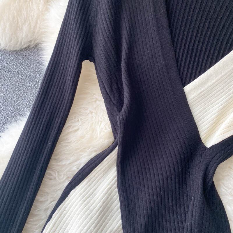 ニット リブ編み トップス クロスボトミング シャツ Vネック セーター ルーズ 重ね着 無地 バイカラー タイト 全2色 ブラック×ホワイト グレー×ブラック 黒 白 灰色 長袖 個性的 レディース ファッション 春 秋 冬 10代 20代 30代 40代 50代 60代 通勤 通学 学生 休日 韓国 韓国風 オルチャン 普段遣い お洒落 おしゃれ お出かけ モード系 大人女子 大人可愛い クール 細身 セクシー エレガント 存在感 謝恩会 2次会 OL モダン フォーマル ビジネス きれいめ シンプル