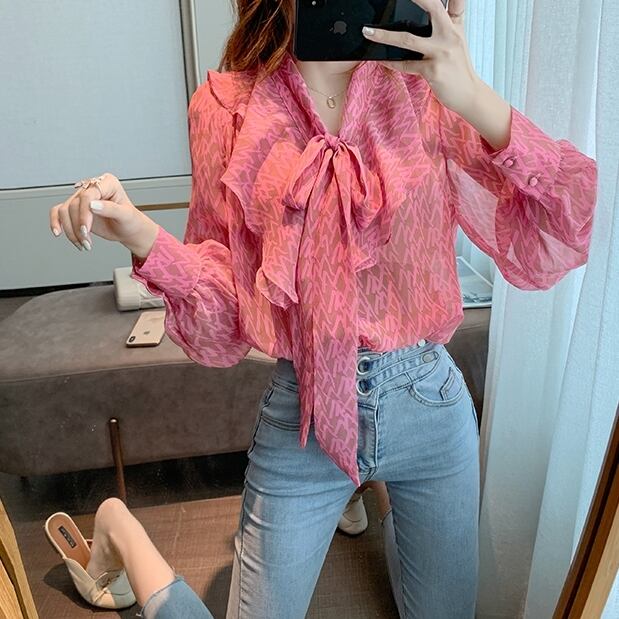シャツ レディース 女性用 シフォン Vネック ルーズ ロングスリーブ ポリエステル シースルー リボン かわいい カジュアル 大人可愛い きれいめ 上品 こなれ感 アジアン レトロ モダン ガーリー キュート ラブリー エレガント フォーマル 存在感 個性的 韓国系 10代 20代 30代 オフィス OL 通勤 通学 学生 休日 お出かけ 女子会 謝恩会 母の日 誕生日 カフェ アウトドア 旅行 お泊まり イベント パーティー 就活 お散歩 公園デビュー トレンド 普段使い 着回し 定番 ゆったり