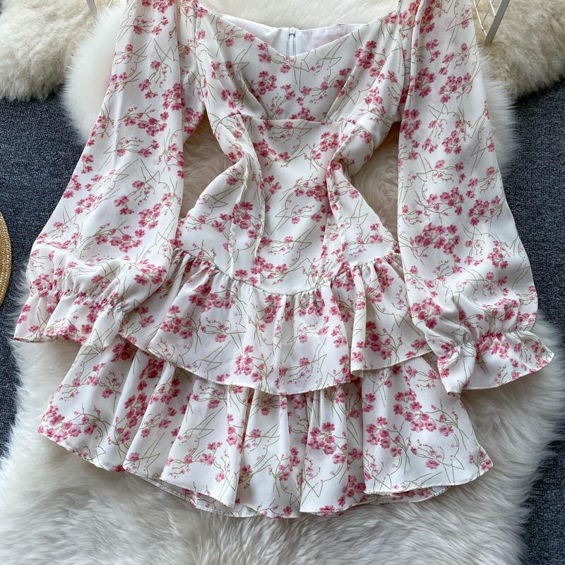 ワンピース スクエアカラー フローラル 花柄 レース スカート 透け感 レトロ ランタンスリーブ フラワー 全2サイズ S M 長袖 個性的 レディース カラフル ガーリー ファッション 春 夏 秋 冬 10代 20代 30代 40代 通学 学生 休日 ボリューム袖 韓国 韓国風 オルチャン 普段遣い お洒落 おしゃれ お出かけ イベント ライブ 参戦服 ミニワンピ ミニ丈 膝上 カワイイ 可愛い ラブリー キュート 女子会 ティアードスカート フリル メルヘンチック ゆめカワイイ ロリータ 原宿系