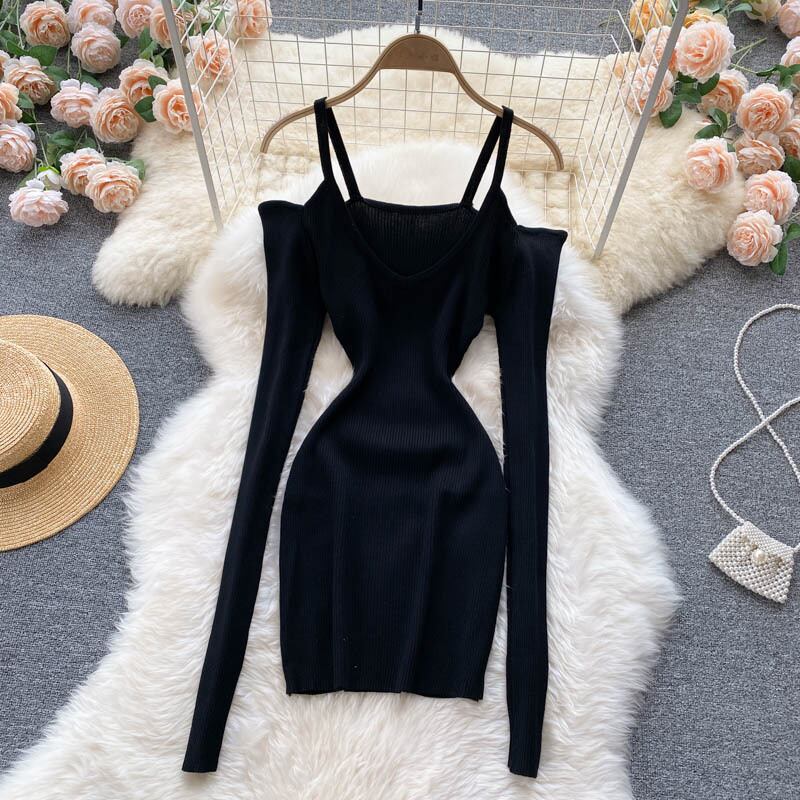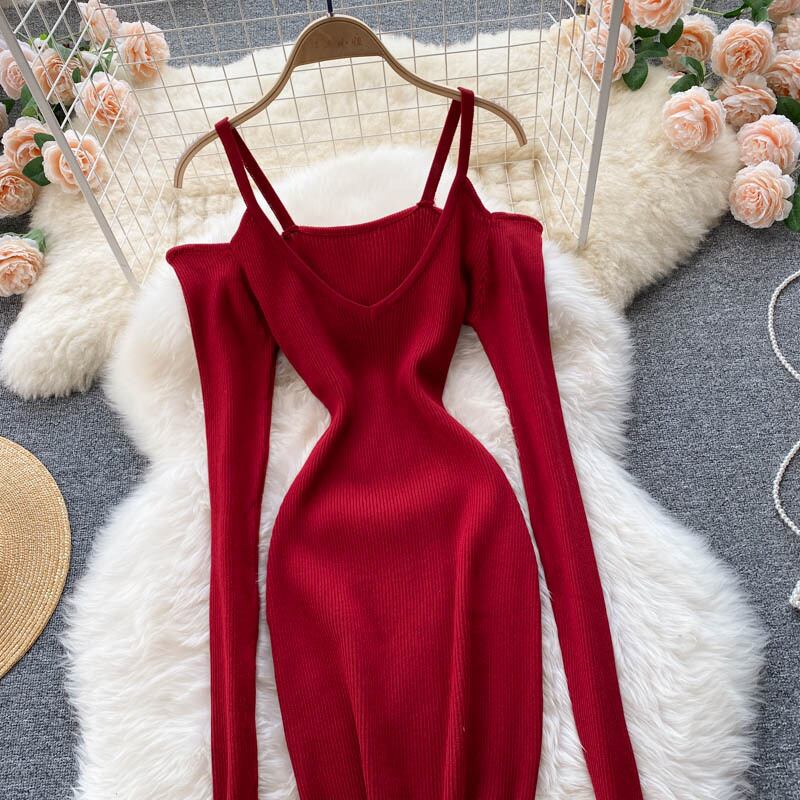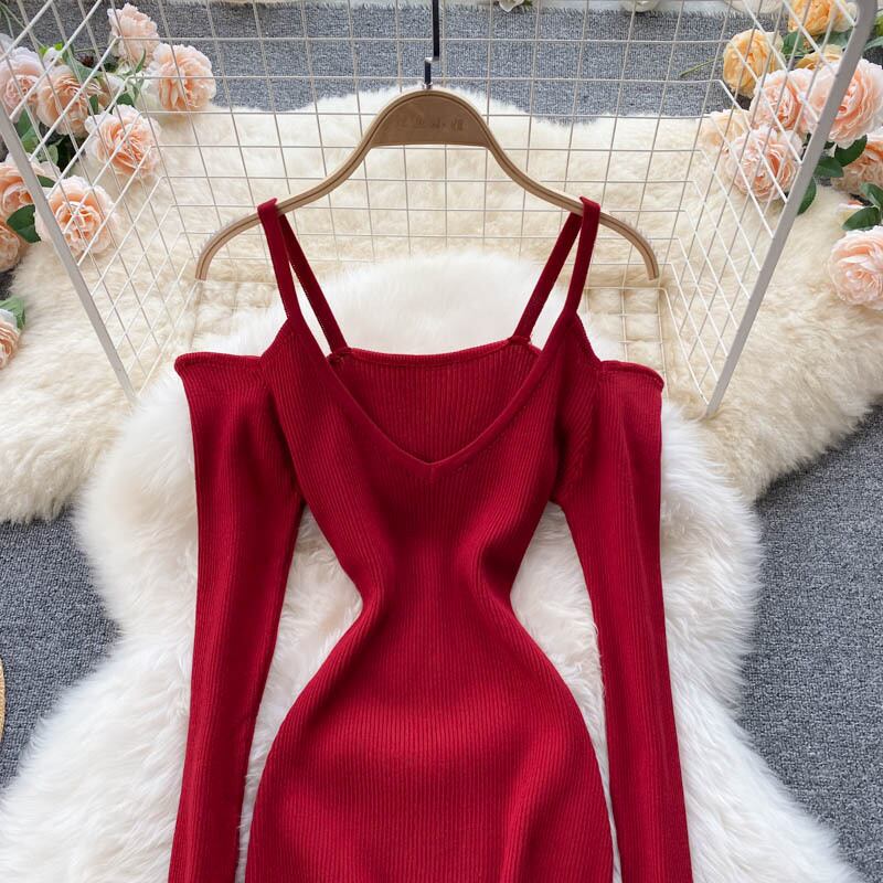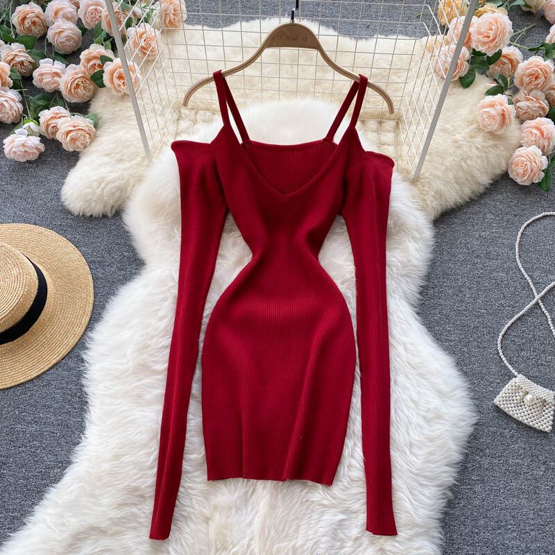 無地 ワンピース セクシー 勝負服 ストラップレススリング ミニワンピ タイト スリム Vネック ラグジュアリー クラブ パーティー 膝上丈 長袖 レディース 全2色 ブラック レッド 大胆 こなれ感 セレブ 外国風 海外 韓国 韓国風 オルチャン 春 夏 秋 冬 オールシーズン ドレス ファッション 10代 20代 30代 40代 50代 60代 お洒落 おしゃれ お出かけ 重ね着 大人女子 大人可愛い デート きれいめ シンプル ナイトドレス パーティドレス オフショルダー エレガント モテ 肌見せ