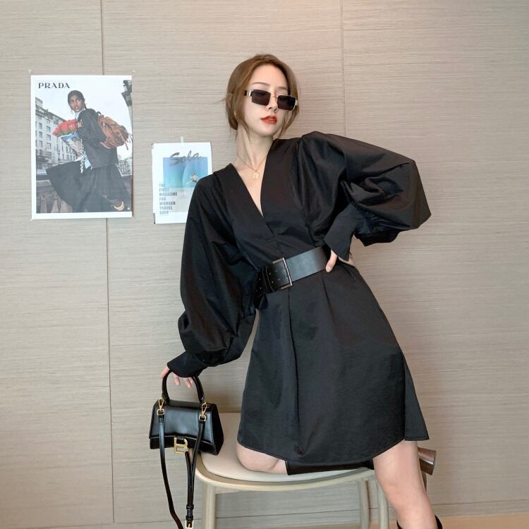 ワンピース パフスリーブ Aライン ワンピ ボリューム感 アクセント ベージュ ブラック 新しい 秋 韓国 オルチャン ガーリー クール レトロ アジアン シック スタイル デザイン センス Vネック ドレス ウエスト ランタンスリーブ Aラインスカート 女性 トレンド 流行 かっこいい0代 20代 30代 40代 50代 60代 お洒落 おしゃれ お出かけ 重ね着 大人女子 大人可愛い デート きれいめ 大人カジュアル フェミニン お出かけ インポート 海外 ランキング インスタ 人気体型カバー