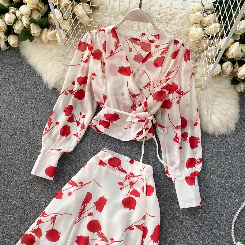 セットアップ スーツ ワンピース ワンピ シースルー オシャレ フラワー 花柄 プロント柄 秋 女性 スタイル プリント トップス ショート シフォン シャツデ ザイン センス プリットスカート レンド 流行 人気 オススメ ランキング インスタ プチプラ プライベート カジュアル フェミニン イベント 披露宴 二次会 パーティー フェス 薄手2セット 上下セット リラックス オルチャン オトナモード 大人クール ロングスリーブ 韓国ファッション アウトドア お泊り ホワイト ブラック グリーン レッド