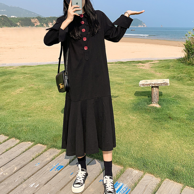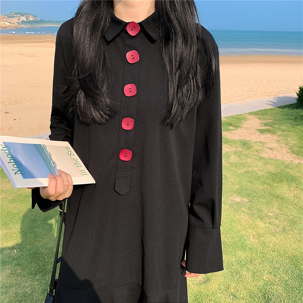 ワンピース レディース フレアスカート ロングスカート ロング丈 ロング 袖あり 長袖 萌袖 襟付き スタンダードカラー 裾フレア ボタン ボタンダウン 黒 ブラック モノトーン 無地 かわいい 大人可愛い 大人 大人女子 きれいめ おしゃれ お洒落 シンプル ラブリー キュート ガーリー 10代 20代 30代 通勤 学生 通学 デート お出かけ 女子会 休日 イベント 普段使い カジュアル こなれ感 ラフ ルーズ 抜け感 ゆったり ゆる 大きめ 楽ちん ボーイッシュ ママ マタニティ リゾート