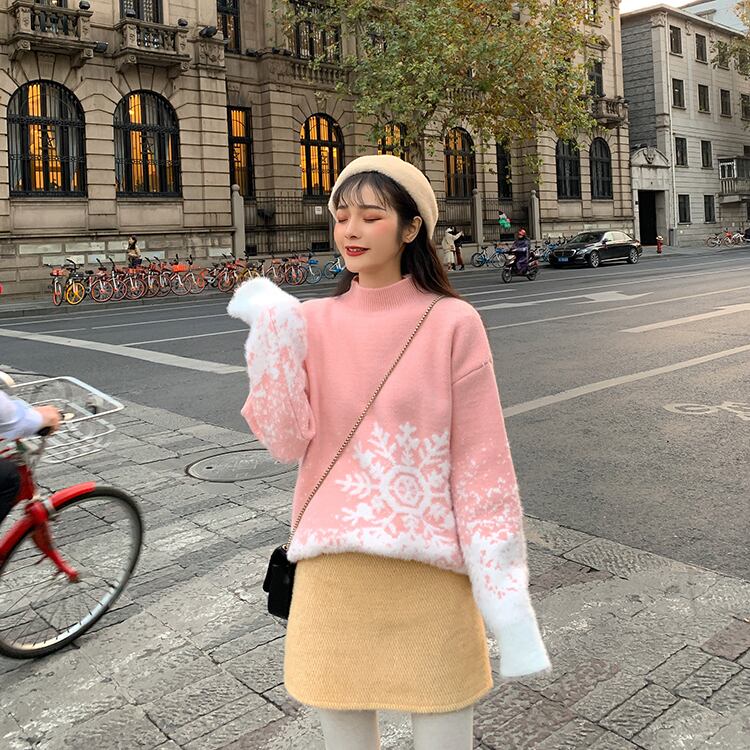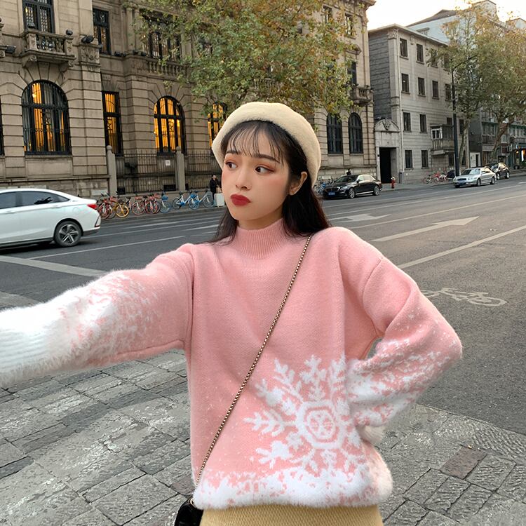 セーター レディース 袖あり 長袖 ボリューム袖 萌袖 ハイネック 襟なし ワイド 厚手 柄 雪 結晶 クリスマス 冬 赤 レッド 青 ブルー ピンク かわいい 大人可愛い 大人 大人女子 きれいめ おしゃれ お洒落 シンプル ラブリー キュート ガーリー 10代 20代 30代 通勤 学生 通学 デート お出かけ 女子会 休日 イベント 普段使い カジュアル こなれ感 ラフ ルーズ レトロ 抜け感 個性的 ゆったり ゆる もこもこ ふわふわ 大きいサイズ 大きめ 楽ちん あったか 暖かい 防寒
