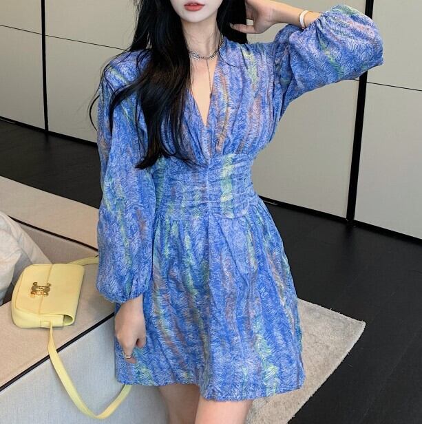 レディースショートワンピース Vカット襟 20代 30代 ミニ丈 ワンピース サマードレス リゾート ミニスカート 七分袖サマーワンピース ミニスカート Aラインミニスカートドレス ショートスカート ハイウエスト ミニサマーワンピース Vカットミニドレス 夏服 買い物 通勤 ホームパーティー デート 女子会 スカート Aライン夏ドレス 七分夏ドレス ハイウエストミニ丈 ブリーワンピース 七分袖サマーワンピ サマー Vカット七分ワンピース ミニハイウエストドレス ブルーショートスカート サマーミニ 夏