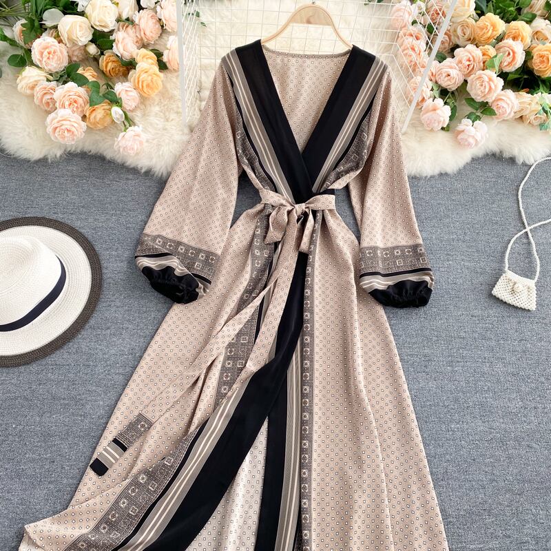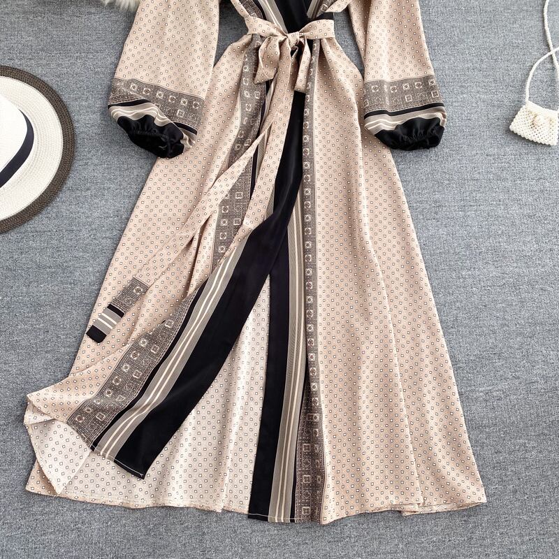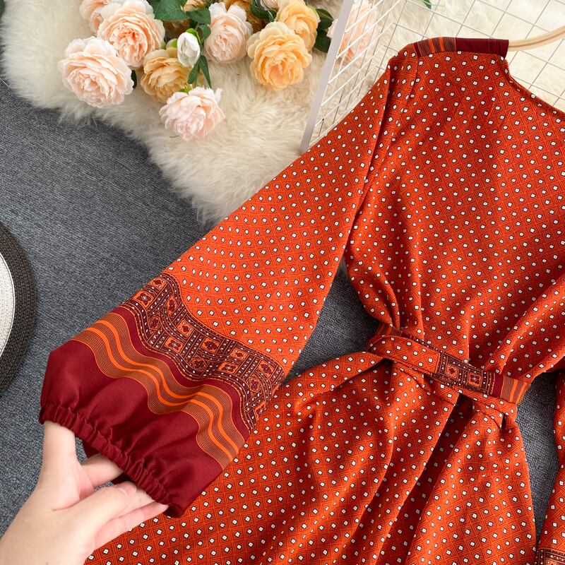 ワンピース レディース Aラインドレス ミモレ丈 袖あり 長袖 Vネック 襟無し スリム フレア 細身 かわいい 大人可愛い きれいめ 大人 上品 ラブリー キュート おしゃれ 大人女子 こなれ感 エレガント ウエストリボン カシュクール 結婚式 二次会 披露宴 10代 20代 30代 OL 通勤 学生 通学 デート お出かけ 女子会 パーティー イベント リゾート 韓国系 オルチャン ファッション コーデ スタイル モテ 美脚 インスタ映え オレンジ アプリコット キャラメル 秋 冬 ドット柄