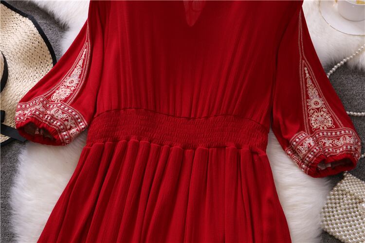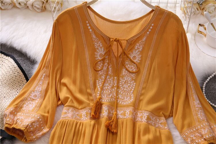 エスニック ボヘミアン 長袖ワンピース 刺繍 ワンピース レディース ラウンドネック キーネック ストラップリボン ティアードスカート フレアスカート Aライン ふんわりスカート ロング丈 フラワー刺繍 フラワーモチーフ 姫ドレス かわいい 大人可愛い ハイウエスト ゆったりウエスト 着やすい ランタンスリーブ 春秋 民族調 袖刺繍 リゾート 旅行 カジュアル 公園 ビーチ リラックス お買い物 お出かけ 韓国 韓国ファッション 低価格 低予算 お買い得 価格重視 着まわせる ヘビロテ服 公園 デート