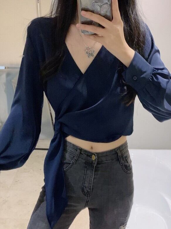 レディースブラウス タイ紐 Vカット ブラウス シャツ トップス ジンジャー ネイビーブルー 20代 30代 40代 ホームパーティー 長袖 通勤 デート 長袖ブラウス 秋服 長袖無地ブラース シャツ ブイ襟トップス 無地 買い物 女子会 食事会 カウス袖 長袖無地シャツ サイドタイ結び 長袖無地ブラウス シャツ 秋遊び着 2色無地 長袖無地シャツ サイドリボン結び デート ディナー トップス 無地ショートブラウス ミニ丈ブラウス 秋無地 タイ結びショートシャツ Vカットブラウス 無地ブイカット ショート