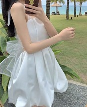 ストラップスリムワンピース バルーンスカート キャミソールバルーンドレス ショートワンピース 10代 20代 30代 ストラップスカート バルーンドレス サマードレス ホームパーティー クラブ オーガンジーリボン ショートスカート 夏服 リゾート リボン バックリボンワンピース キャミソールバルーンドレス ワンピース ドレス サマーミニスカート サマーオーガンジーリボン ノースリーブ 無地ワンピース ホワイトミニワンピース バルーン ミニ丈 ノースリーブ無地 サマー ストラップバルーンドレス 白スカート