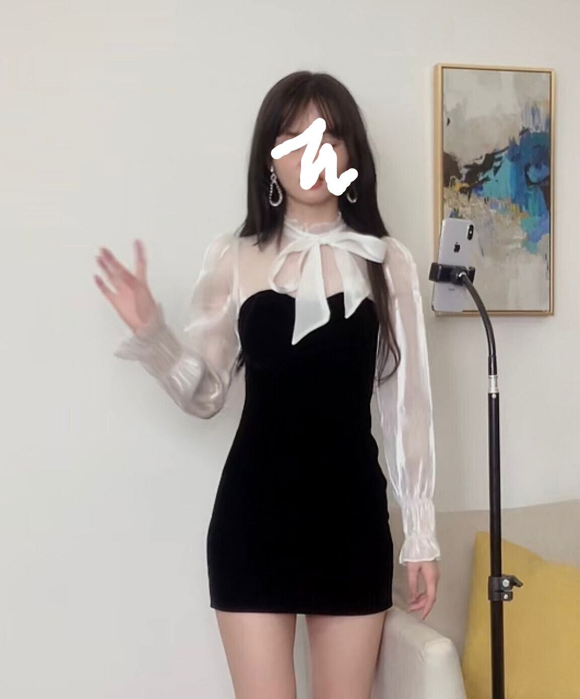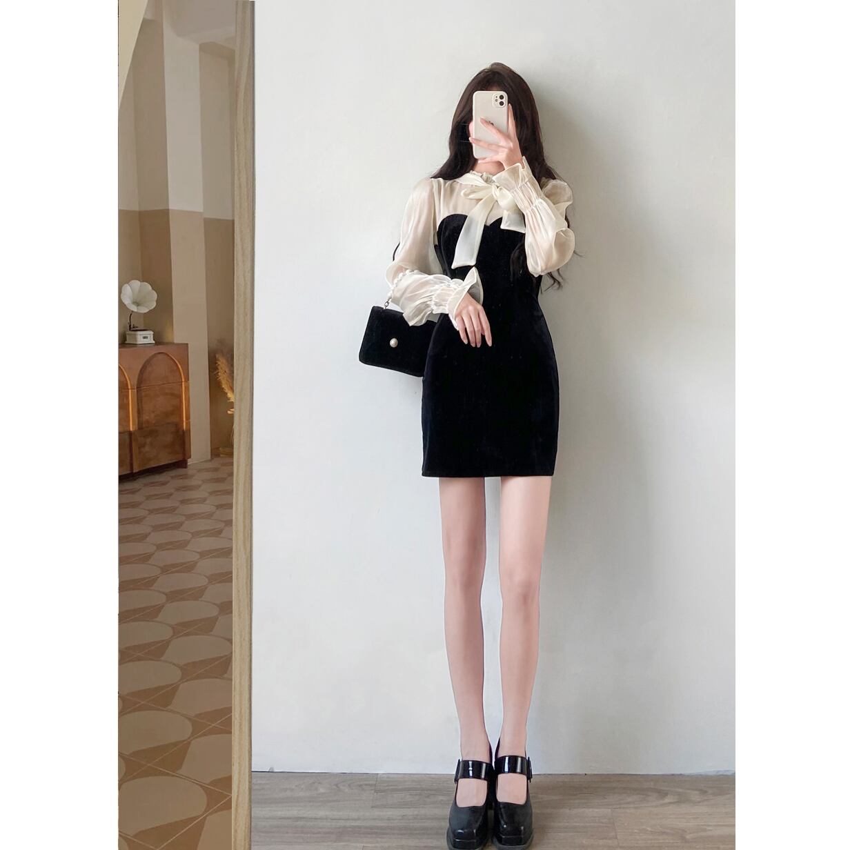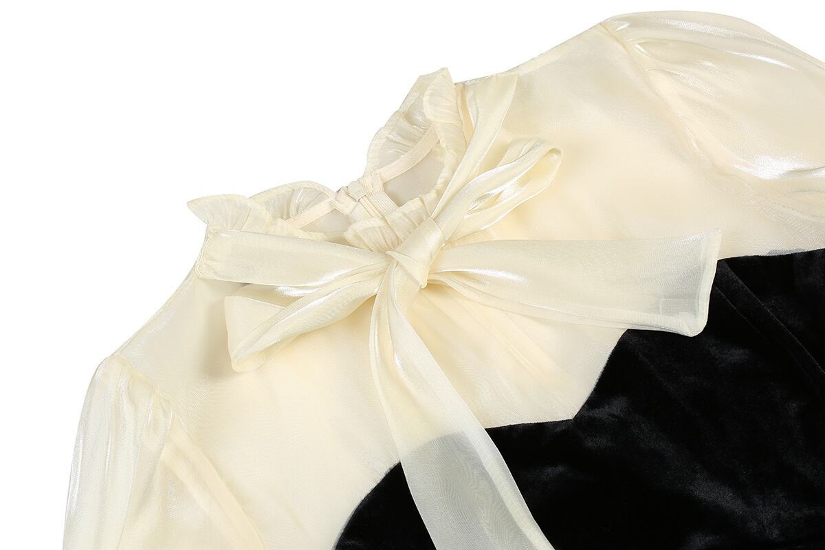 ワンピース レディース ワンピドレス タイトスカート フェイクワンピース ミニ丈 ミニ 袖あり 長袖 ラッフルカフス エクステンションカフス スタンドカラー リボン ボウタイ スリム タイト 細身 ストレート レース チュール シフォン 切り替えデザイン 透け感 シースルー 異素材MIX かわいい 大人可愛い 大人 大人女子 きれいめ おしゃれ お洒落 シンプル ラブリー キュート ガーリー 10代 20代 30代 デート お出かけ 女子会 休日 イベント 普段使い エレガント フォーマル パーティー