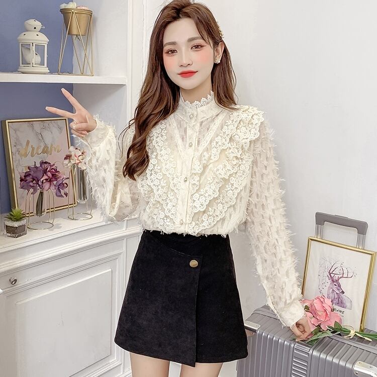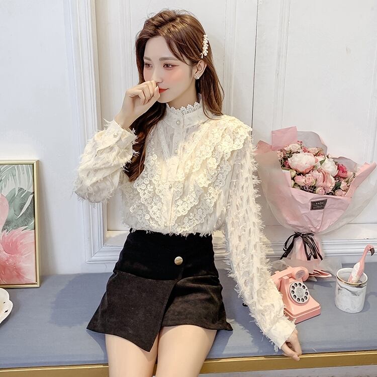 ブラウス レディース 女性用 レース ボトミングシャツ スタンドカラー ステッチ ハイネック クルーネック ルーズ くすみカラー ふわふわ かわいい 大人女子 大人可愛い シンプル 上品 きれいめ カジュアル ガーリー キュート ラブリー 存在感 主役級 モダン アジアン とろみ感 抜け感 エレガント フォーマル OL 通勤 オフィス ビジネス 通学 学生 女子会 謝恩会 デート 記念日 誕生日 母の日 イベント 卒園式 入園式 就活 旅行 休日 お出かけ トレンド インスタ映え 双子 韓国系 おしゃれ