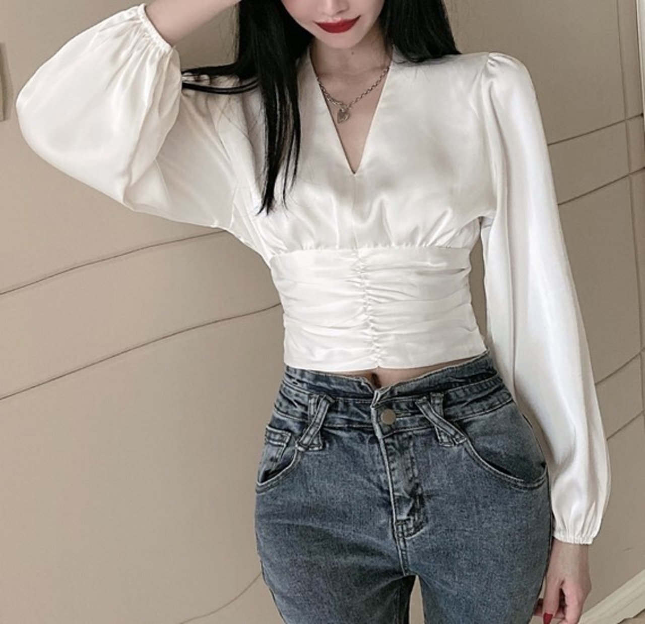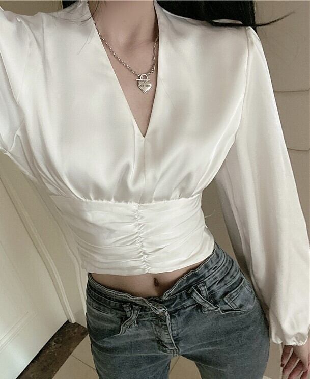 レディース長袖ブラウス スリムブラウス ブイカットミニブラウス 10代 20代30代 40代 ホームパーティー シャツ スリム 長袖 無地 ホワイト ブラック サテン風ブラウス ブラウス トップス パフスリーブ リゾート 袖口ゴム ショートシャツ 無地ブラウス 秋服 スリムシャツ 2色 通勤 買い物 デート 女子会 飲み会 クラブ 遊び着 ミニ丈 ショートブラウス ミニ丈無地ブラウス Vカットシャツ 秋長袖ブラウス パフスリーブ無地ブラウス ショートスリムブラウス 通学 デート スリムシャツ 黒 白