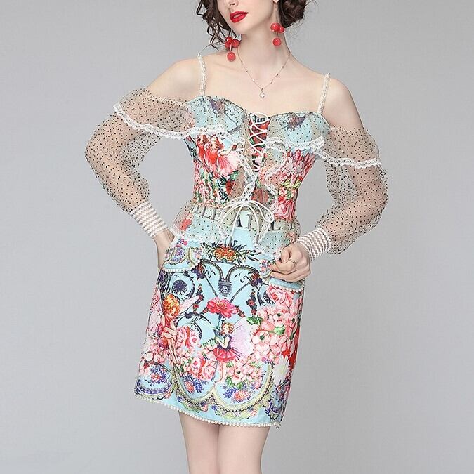 ドレス ワンピース パーティードレス ミニ丈 ショート パフスリーブ ドット柄 水玉 フラワー 花柄 ブルー 透け感 天使 エンジェル パーティ イベント 二次会 発表会 スーツ セット上下 女性 サマードレス デザイン センス レディース スリング トップ ニッチ プリント 初秋 冬 ファッションスーツ 新しい トレンド 流行 人気 ショートスカート ハーフスカート ツーピース キャミソール 軽い ファッショナブル ツーピース デート 大人可愛い クール モード系 主役級 素敵 プチプラ ランキング