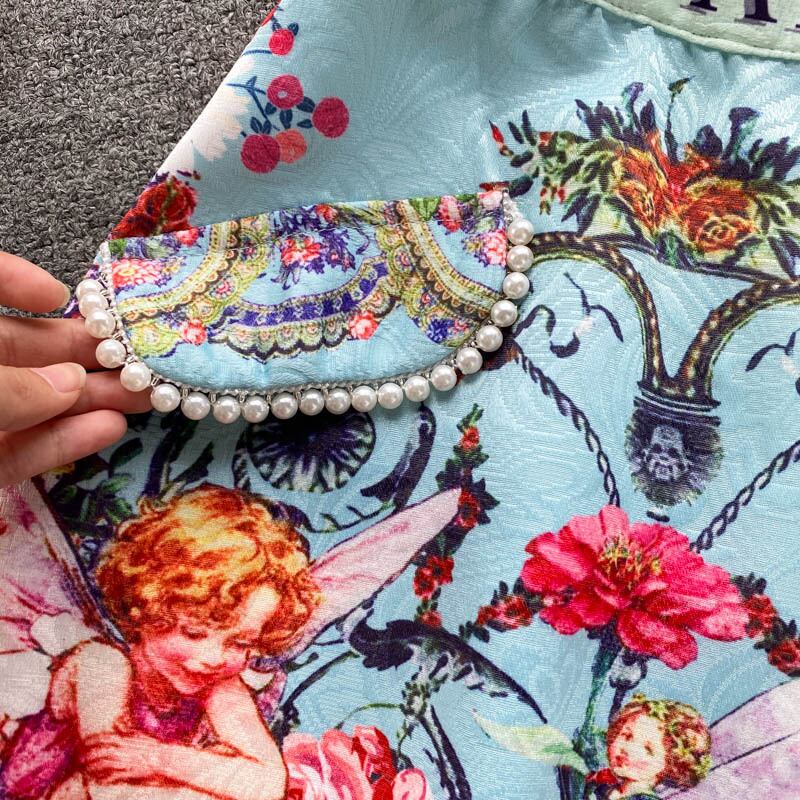 かわいらしい天使とフラワープリント柄の綺麗なブルーで