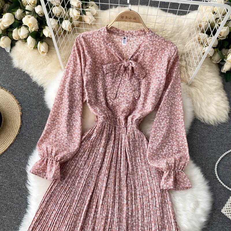 ワンピース ドレス 花柄 フラワー プリント 小花 パフスリーブ リボン ネクタイ プリーツ スカート ロング丈 ロング 上品 着こなせ術 カジュアル フェミニン 二次会 パーティー イベント お出かけ 通勤 OL フレンチドレス 冬 秋 新しい トレンド 新作 女性 蝶ネクタイ スリム ミドル丈 シフォン フローラル イベント 二次会 発表会 ディナー デート メンズライク インポート 海外 ショッピング オルチャン デザイン ファッショナブル プチプラ ランキング 大人女子 大人クール 清楚 上品