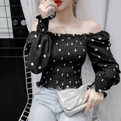 シャツ レディース 女性用 フローラル シフォン オフショルダー ワンラインネック ロングスリーブ ボトミングシャツ ドット柄 スリム ランタンスリーブ ワードカラー ヘッジ かわいい 大人可愛い きれいめ 上品 こなれ感 アジアン 韓国系 ガーリー キュート ラブリー エレガント 存在感 モード系 カジュアル おしゃれ フォーマル 10代 20代 オフィス OL 通勤 通学 学生 女子会 カフェ 休日 お出かけ デート 記念日 イベント パーティー 旅行 ドライブ インスタ映え 双子 定番 普段使い