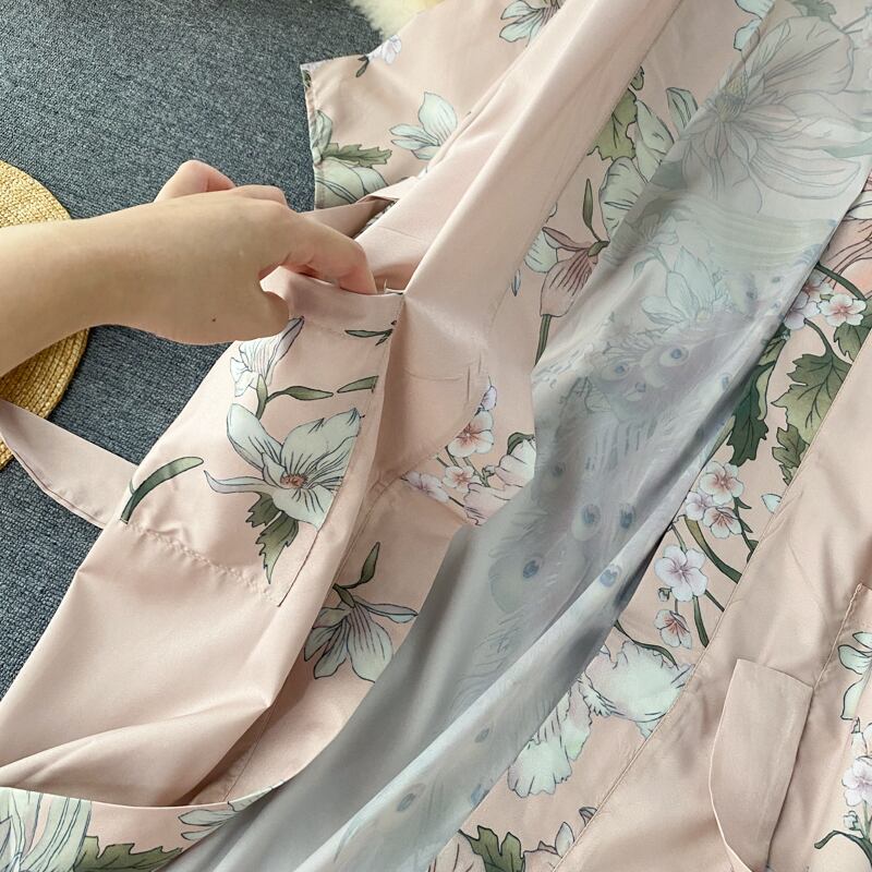 ワンピース レディース ジャケット Aラインドレス ミモレ丈 袖あり 長袖 Vネック 襟無し スリム 細身 ウエストリボン サテン かわいい 大人可愛い きれいめ 大人 上品 ラブリー キュート おしゃれ 大人女子 こなれ感 エレガント ガウン 結婚式 二次会 披露宴 10代 20代 30代 OL 通勤 学生 通学 デート お出かけ 女子会 パーティー イベント リゾート 韓国系 オルチャン ファッション コーデ スタイル モテ 体系カバー 美脚 脚長 インスタ映え ポケット ピンク ブルー 花柄