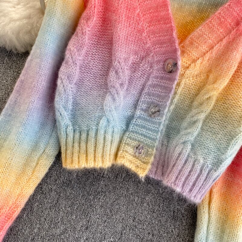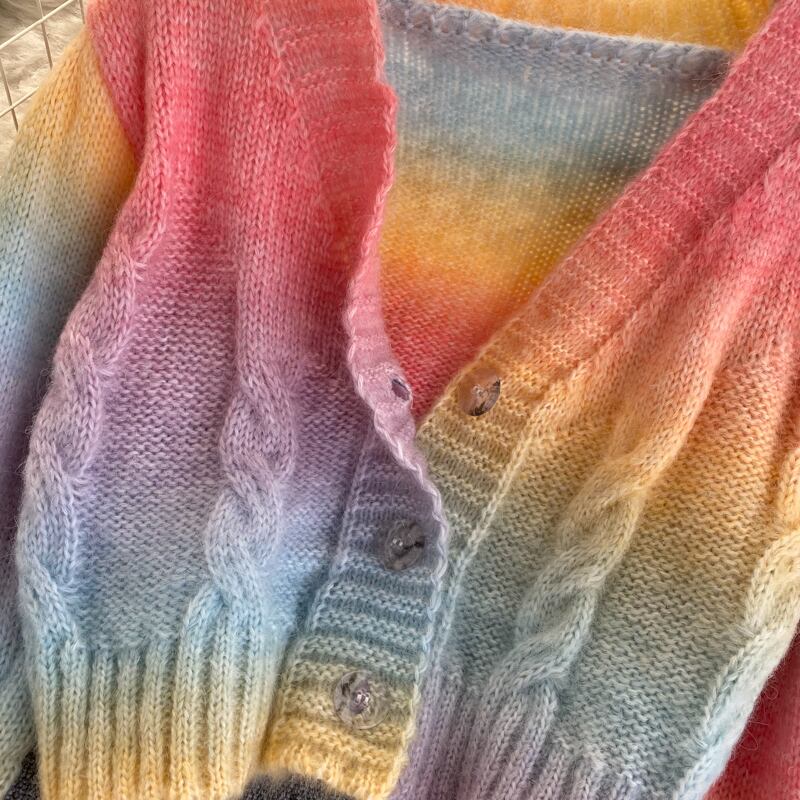 ニット レインボー カーディガン 長袖 セーター Vネック トップス ボタン 前開き レディース 普段着 オシャレ お洒落 おしゃれ ハイセンス 春 秋 冬 韓国 韓国風 10代 20代 30代 イベント 誕生日 インスタ映え 外国風 普段遣い 休日 ライブ 文化祭 学生 通学 ゆめ可愛い ゆめカワ 原宿系 カラフル 個性的 キュート ガーリー ハロウィン クリスマス 楽ちん あったか 防寒 遊園地 旅行 部屋着 ボーダー マーブル ストライプ 青文字系 派手 目立つ パーティ 舞台 コスプレ ゆるかわ