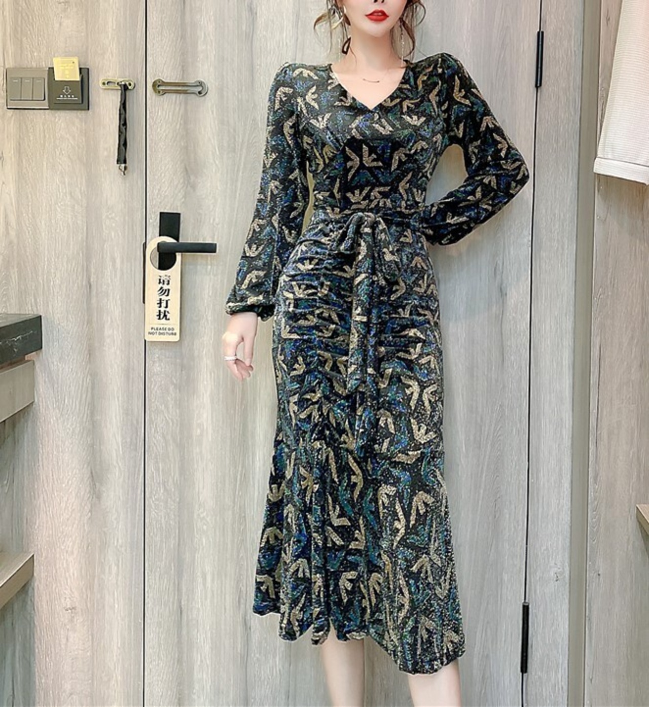 秋 冬 新作 ワンピース ドレス 洋風 Vネック スリム ウエスト レディース スプリットエンド フィッシュテールスカート スリム ミドル丈 ヨーロピアンスタイル レトロ コンビネーション蓮の花 パーティー イベント 二次会 発表会 結婚式 お呼ばれ お出かけ 通勤 OL 20代 30代 40代 50代 大人女子 切り替えし デザインクール スタイリッシュ かっこいい ラグジュアリー アウトドア リゾート ディナー 披露宴 暖かい 長袖ロングスリーブ メンズライク 上品 着こなし マストアイテム