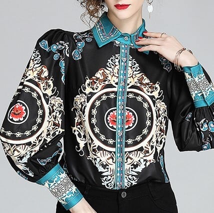 ブラウス パフスリーブ ボリューム感 プリント柄 上品 センス ラグジュアリー 気品 ハイセンス トレンド 新作 流行 ランキング インスタ映え インポート プチプラ シンプル レディースシャツ 女性 デザイン カラーマッチング ランタンスリーブ パレススタイル オールマッチ パーティー 披露宴 ウエディング OL 通勤 20代 30代 40代 50代 幅広い年齢層 カットソー 個性的 クール スタイリッシュ かっこいい アウトドア リゾート ディナー 記念日 おすすめ お出かけ インポート プチプラ