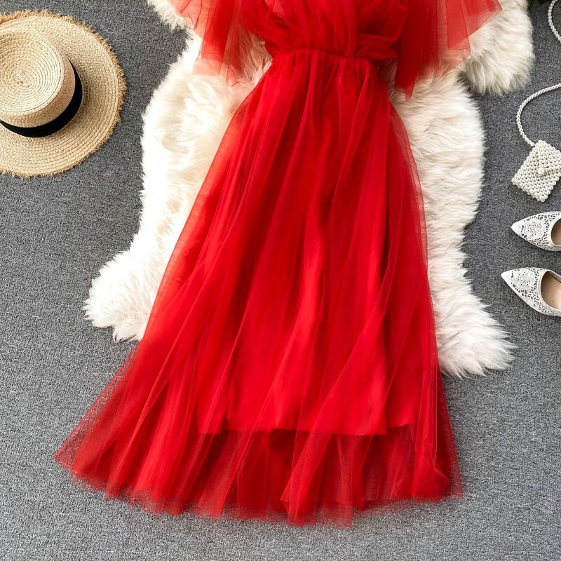 Aライン ドレス ワンピース パーティードレス シースルー 透け感 とろみ 妖精スタイル フェアリー スカート 優しい スタイル ドレスファン Vネックプリーツ スリムフィット ミドル丈 メッシュ ドレススカート ワンサイズ ブラック イエロー ライトグリーン パープル レッド グレー グリーン 披露宴 ウエディング 二次会 発表会 お呼ばれ 夜会 ディナー 誕生日 特別な日 大人可愛い 大人女子 10代 20代 30代 カラードレス チュチュ 映え インポート プチプラランキングスタイリッシュラブリー