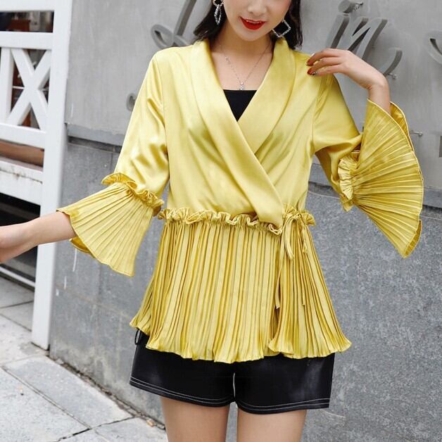 トップス ブラウス シャツ トップ シック Vネック トランペットスリーブ ウエストベルト 新作 冬 秋 トレンド 流行 ウッドイヤー ブラウスプリーツ Vネック プリーツ フリル レース シフォンシャツ 女性 フリルワンピース シャツトップ 女性 カジュアル お出かけ 普段着 カジュアル 乙女 おすすめ フェミニン 上品 綺麗目 モテ 旅行 デート インポート プチプラ ランキング スタイリッシュ 韓国 デザイン オルチャン 七分丈 リボン ゴージャス 大人可愛い 大人女子 女子 旅行 女子力高め