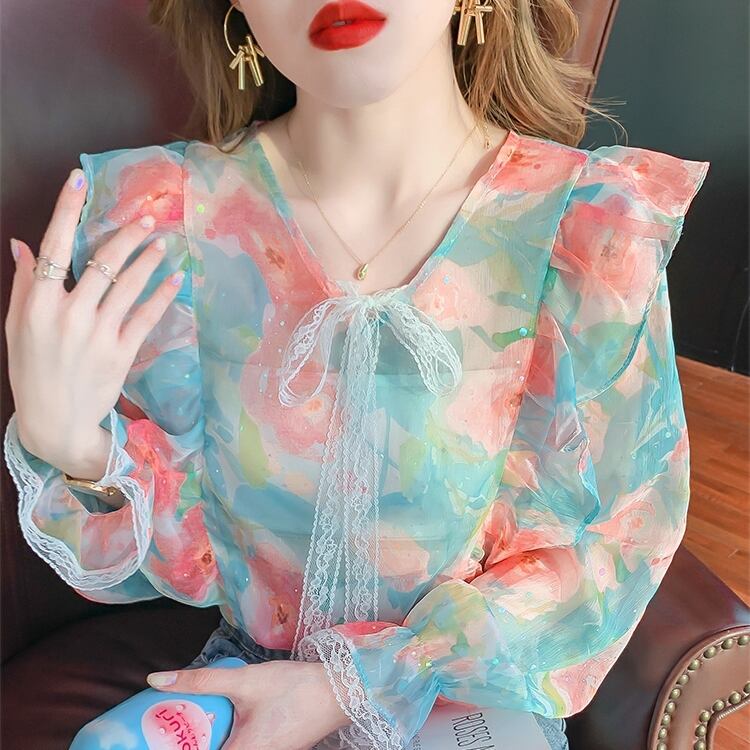 ブラウス レディース 女性用 フローラル ニッチ レース シフォン ロングスリーブ ストレート リボン 花柄 プリント 春 秋 大人可愛い かわいい シンプル カジュアル きれいめ 上品 こなれ感 ガーリー キュート ラブリー モダン エレガント フォーマル 存在感 10代 20代 ママ オフィス OL 通勤 通学 学生 ビジネス 謝恩会 母の日 誕生日 お出かけ 休日 女子会 カフェ デート 記念日 イベント パーティー リゾート 旅行 トレンド オルチャン おしゃれ スタイル 普段使い 着回し 双子