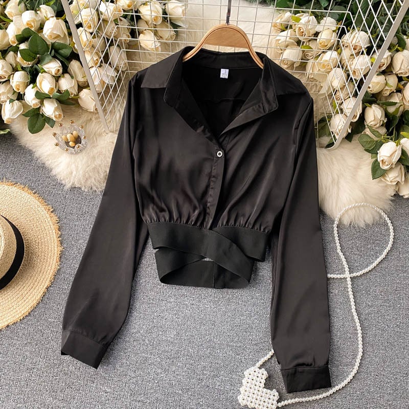 ブラウス シャツ シンプル かっこいい ラグジュアリー 春 秋 冬 シャツ女性 デザイン センス ニッチ ウエスト切り替えし ショート丈 スリム フィット チュニックスーツ 衿 ウエストクロスカット ショートジャケット ファッショナブル ショートトップ オールマッチ カジュアル フェミニン 二次会 パーティー イベント OL 通勤 20代 30代 40代 50代 幅広い年齢層 ワンサイズ ブラック ホワイト レッド オトナモード 大人 清楚 上品 着回し 重ね着 モード系 モダン ショッピングインポート