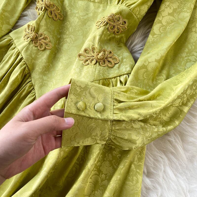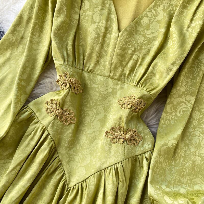 ドレス ワンピース ワンピ ワンピースドレス イエロー ミニ丈 ショート丈 フラワー プリント 花柄 ヨーロッパスタイル ハイエンドスカート 新しい 新作 流行 トレンド レトロ 流行 人気 オススメ レト ボタン Vネック ランタンスリーブ ウエスト ジャカードドレス 婦人服 ディスクバックル スリムショート ドレス女性 披露宴 ウエディング 二次会 発表会 イベント 大人かわいい 上品 エレガント ラグジュアリー 気品 大人 大人女子 モテ メンズライク 女子会 お呼ばれ 夜会 ディナー 誕生日