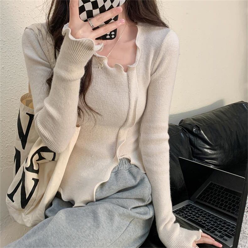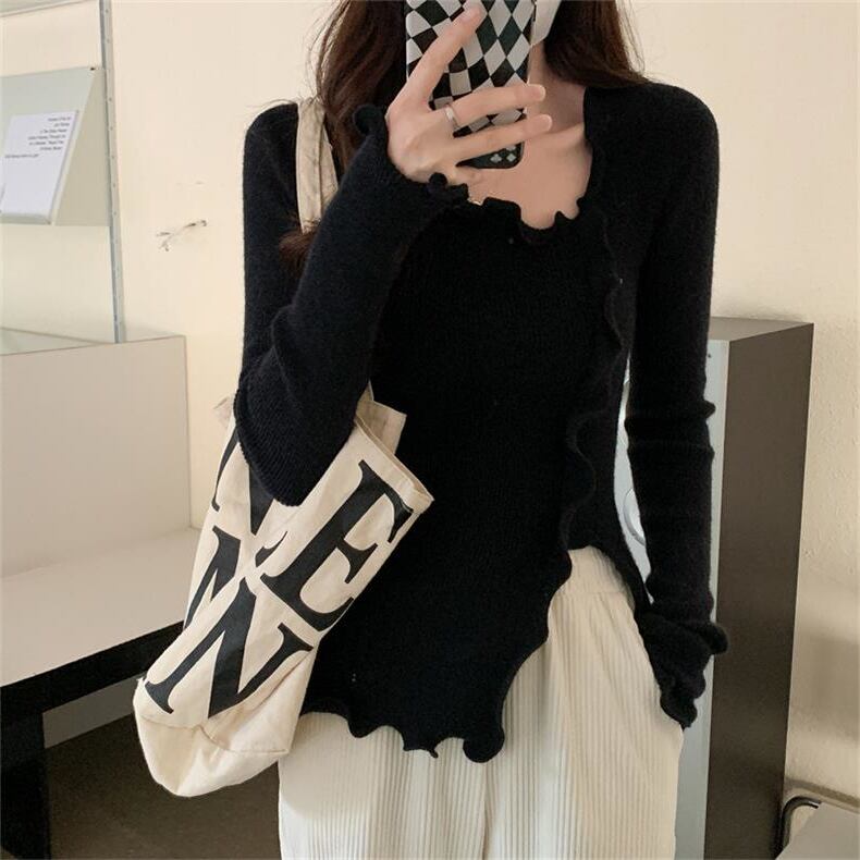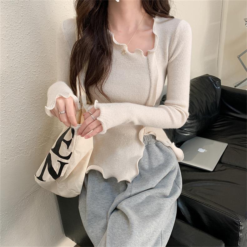 トップス レディース ニット 袖あり 長袖 襟なし フリルカラー フリル 襟なし アシンメトリー モノトーン 無地 黒 ブラック 白 アプリコット かわいい 大人可愛い 大人 大人女子 きれいめ おしゃれ お洒落 シンプル ラブリー キュート ガーリー 可憐 フェミニン 10代 20代 30代 通勤 学生 通学 デート お出かけ 女子会 休日 普段使い カジュアル タイト こなれ感 着回し 重ね着 楽ちん ラフ ルーズ 抜け感 個性的 ひらひら ゆったり ゆる 上品 エレガント パーティー イベント