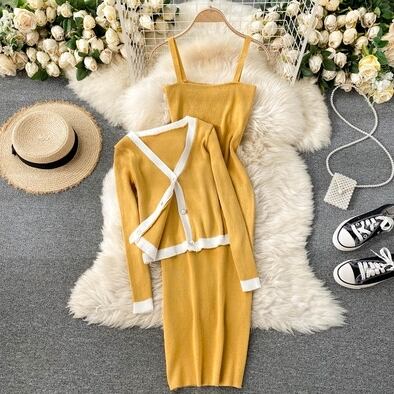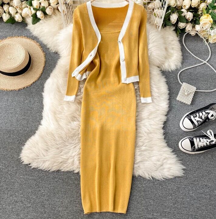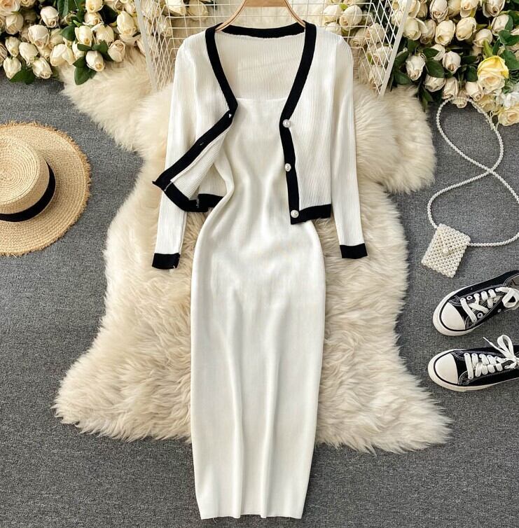 ニットアンサンブルワンピース キャミソールワンピース ロング丈ハイウエスト スカート20代 30代 40代 ホームパーティー 通勤 リゾート 女子会 エレガント アンサンブル キャミソールドレス ワンピース スカート カーディガン 長袖 秋服 無地ライン タンクトップ スリムスカート キャミソールスーツ エレガント スリムスカートアンサンブルハイウエストワンピース オータムドレス 秋ハイウエスト アンサンブルキャミソール スリムロングスカート ロングワンピース 無地アンサンブル 長袖無地ワンピース 無地
