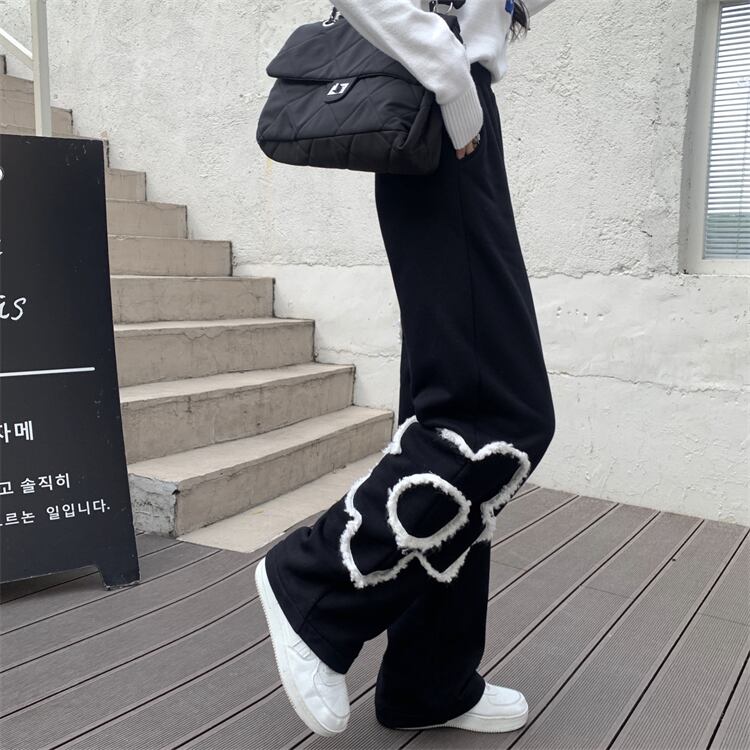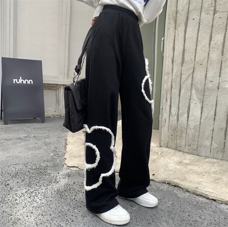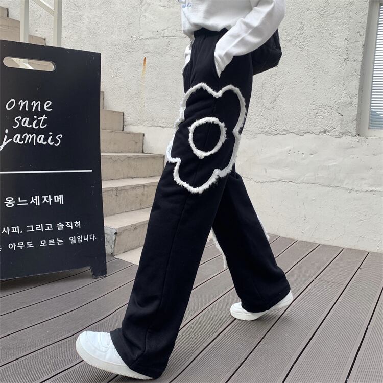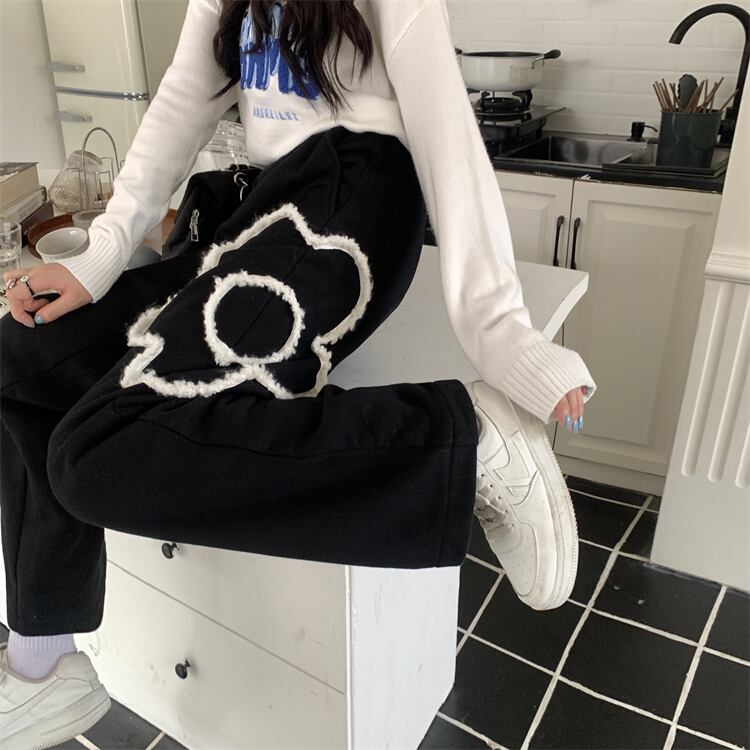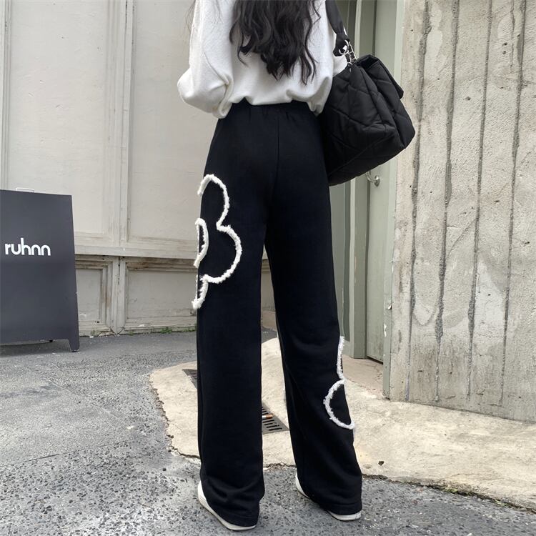 立体 ボトムス 3Dズボン ブラックパンツ ズボン パンツ 黒 ブラック ロング丈 ストレート ワイド ワイドレッグ ワンポイント 部屋着 かわいい 大人可愛い 大人 大人女子 きれいめ おしゃれ お洒落 シンプル ラブリー キュート 10代 20代 30代 学生 通学 デート お出かけ 女子会 休日 普段使い カジュアル こなれ感 ラフ ルーズ 抜け感 防寒 暖かい あったか 個性的 ゆったり ゆる パーティー 着回し 楽ちん お泊まり 体系カバー イベント フローラル 花柄 フラワー ボタニカル