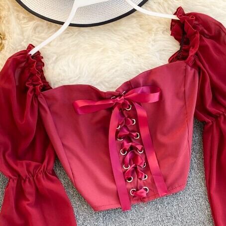 トップス トップ カットソー 長袖 シースルー パフスリーブ リボン 編み上げ ヨーロピアン レトロ 流行 人気 オススメ シンプル かっこいい ラグジュアリー カジュアル 普段着 お出かけ ショッピング 買い物 インポート 海外 トップデザイン センス 女性 レディースファッション レディース ロングスリーブ ステッチ ウエスタンスタイル ショート丈 ショート レースシャツ インポート プチプラ ランキング 大人かわいい ラブリー オシャレ オトナモード クール スタイリッシュ 着回し パーティー